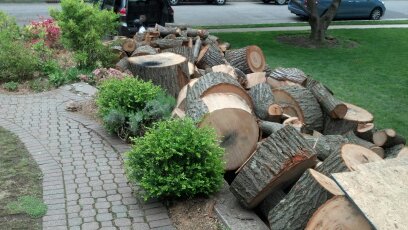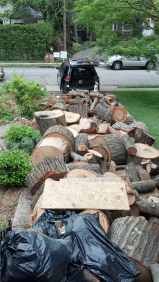 Can you believe it? One is tempted to say, by way of hyperbole, that it is a “ton” of wood. However, it is actually probably closer to six or seven tons, as it is three large trees, branches and all.