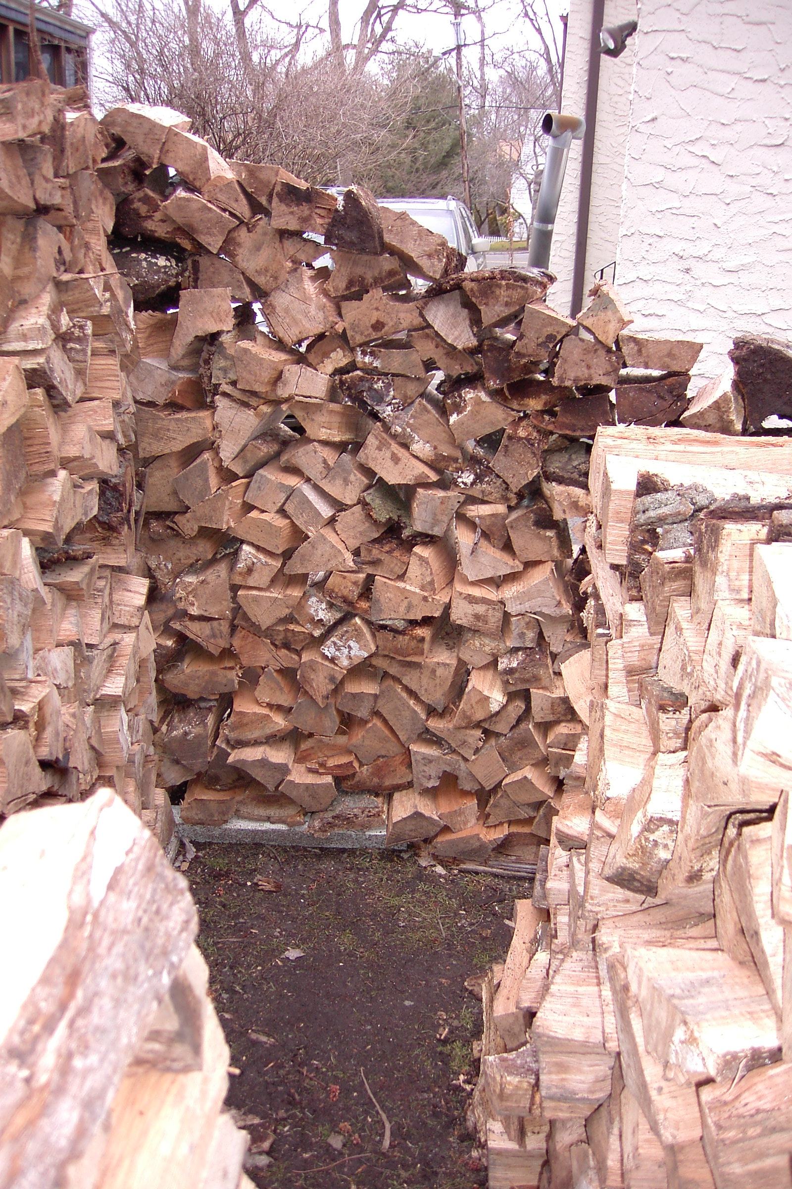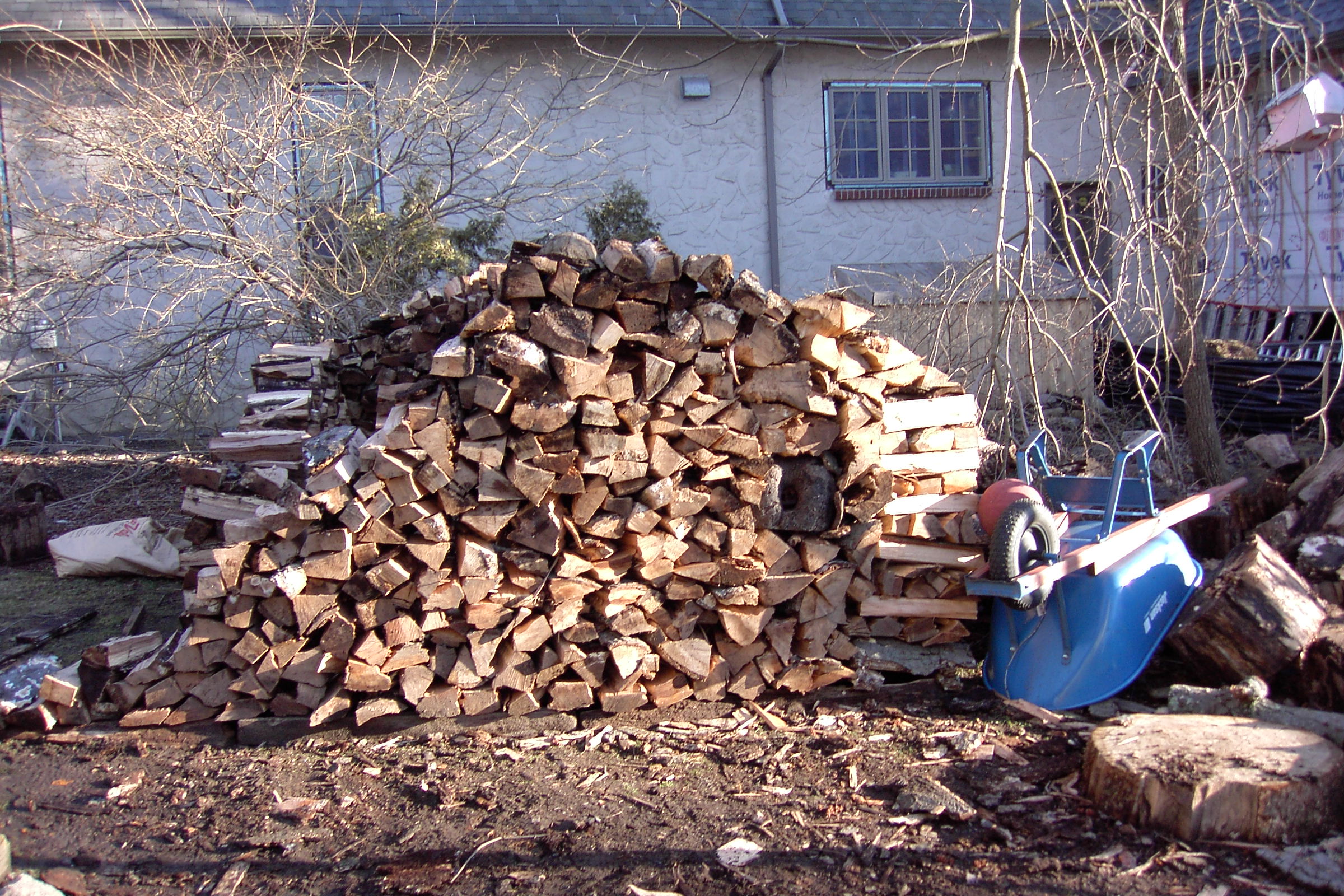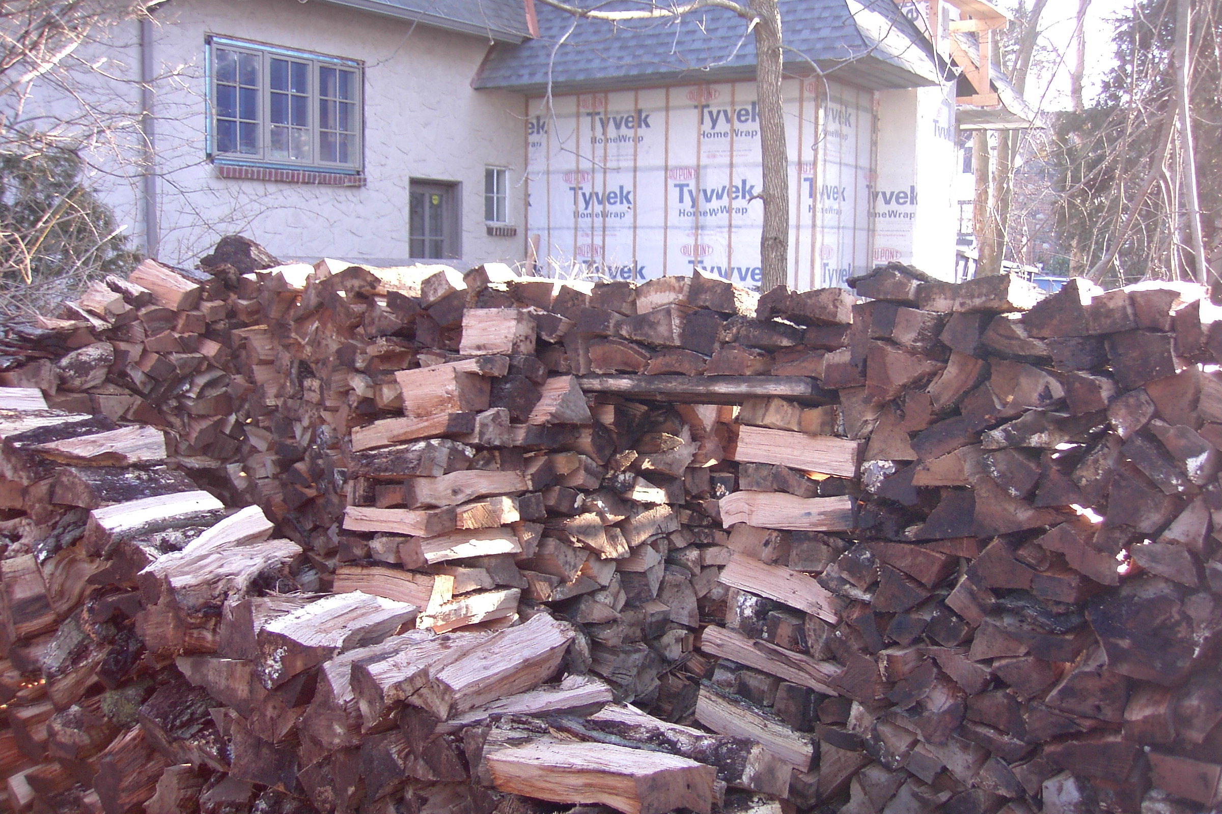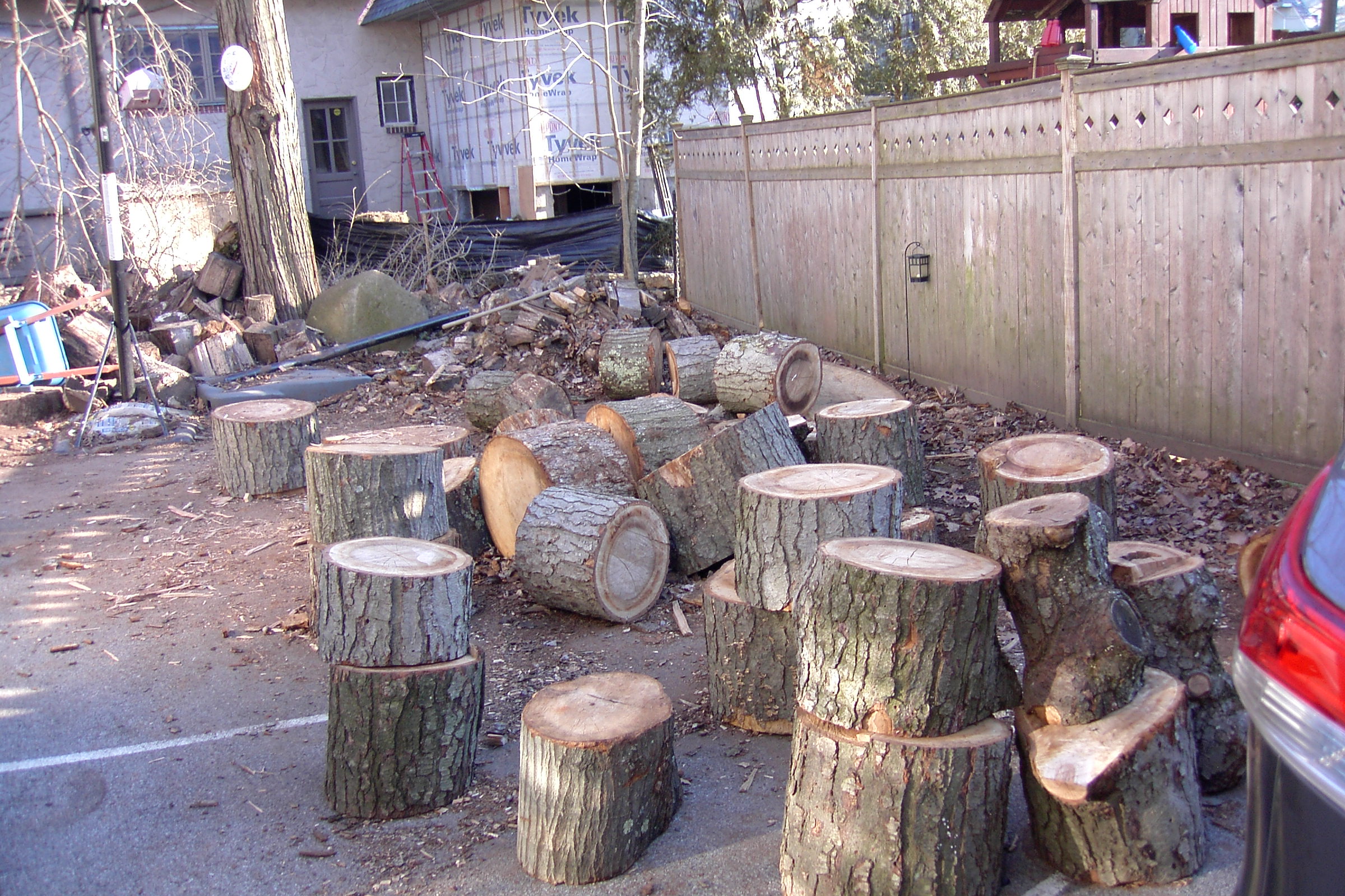 This is one of the people that heard my interview on the radio and heard that I would split wood for free and gave me a call. I usually don’t like to go as far as Stamford but I didn’t have anything closer once I finished that nice little house in New Rochelle on Forest Avenue. It looked like it would not be enough wood for a house, but once I heard that there was a child, enough room to build a house and interest in having one,I reconsidered and thought I would try to build a small one. Here is the  first couple of days work: