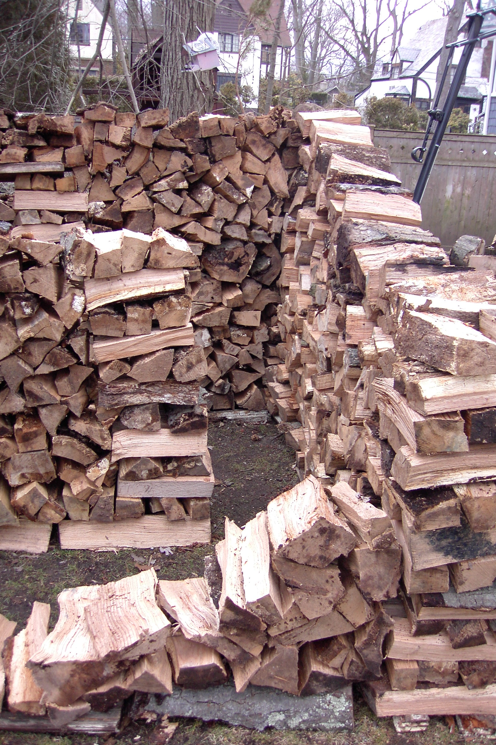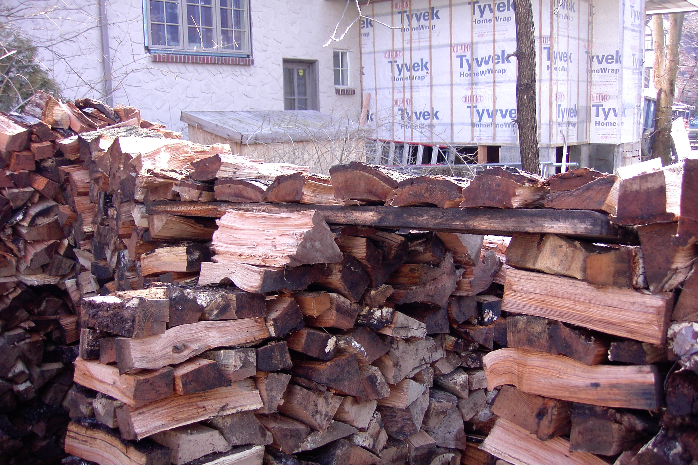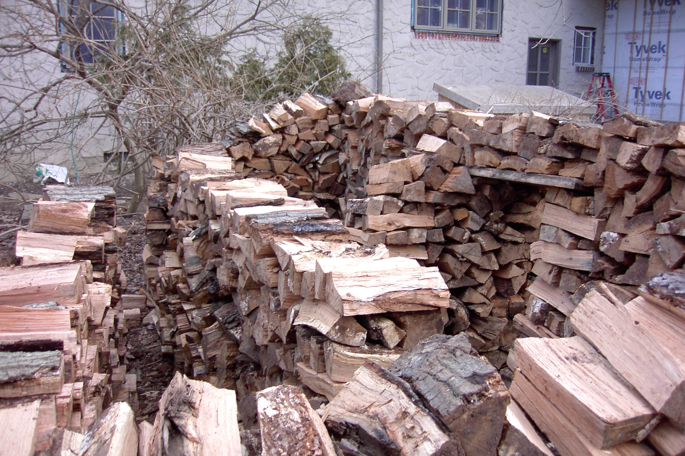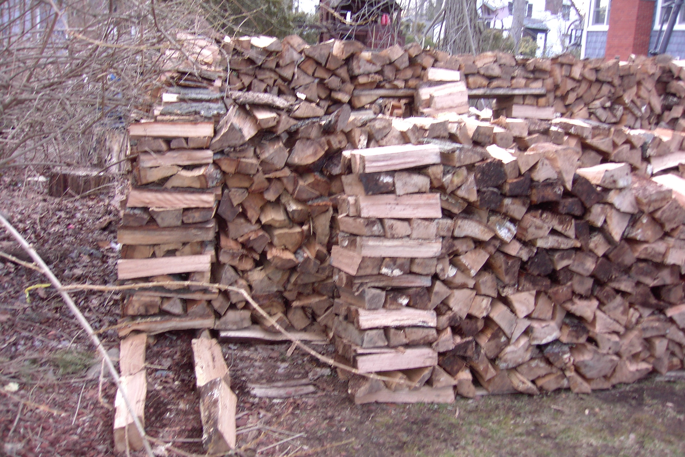 This is one of the people that heard my interview on the radio and heard that I would split wood for free and gave me a call. I usually don’t like to go as far as Stamford but I didn’t have anything closer once I finished that nice little house in New Rochelle on Forest Avenue. It looked like it would not be enough wood for a house, but once I heard that there was a child, enough room to build a house and interest in having one,I reconsidered and thought I would try to build a small one. Here is the  first couple of days work: