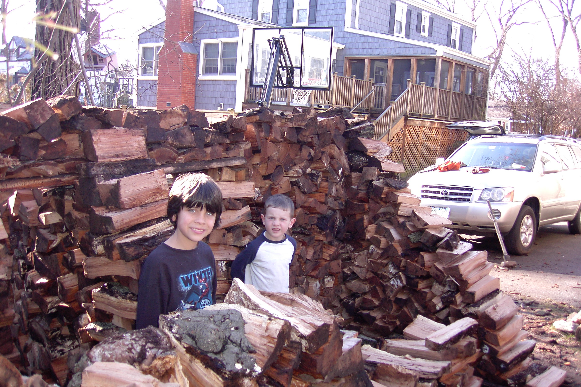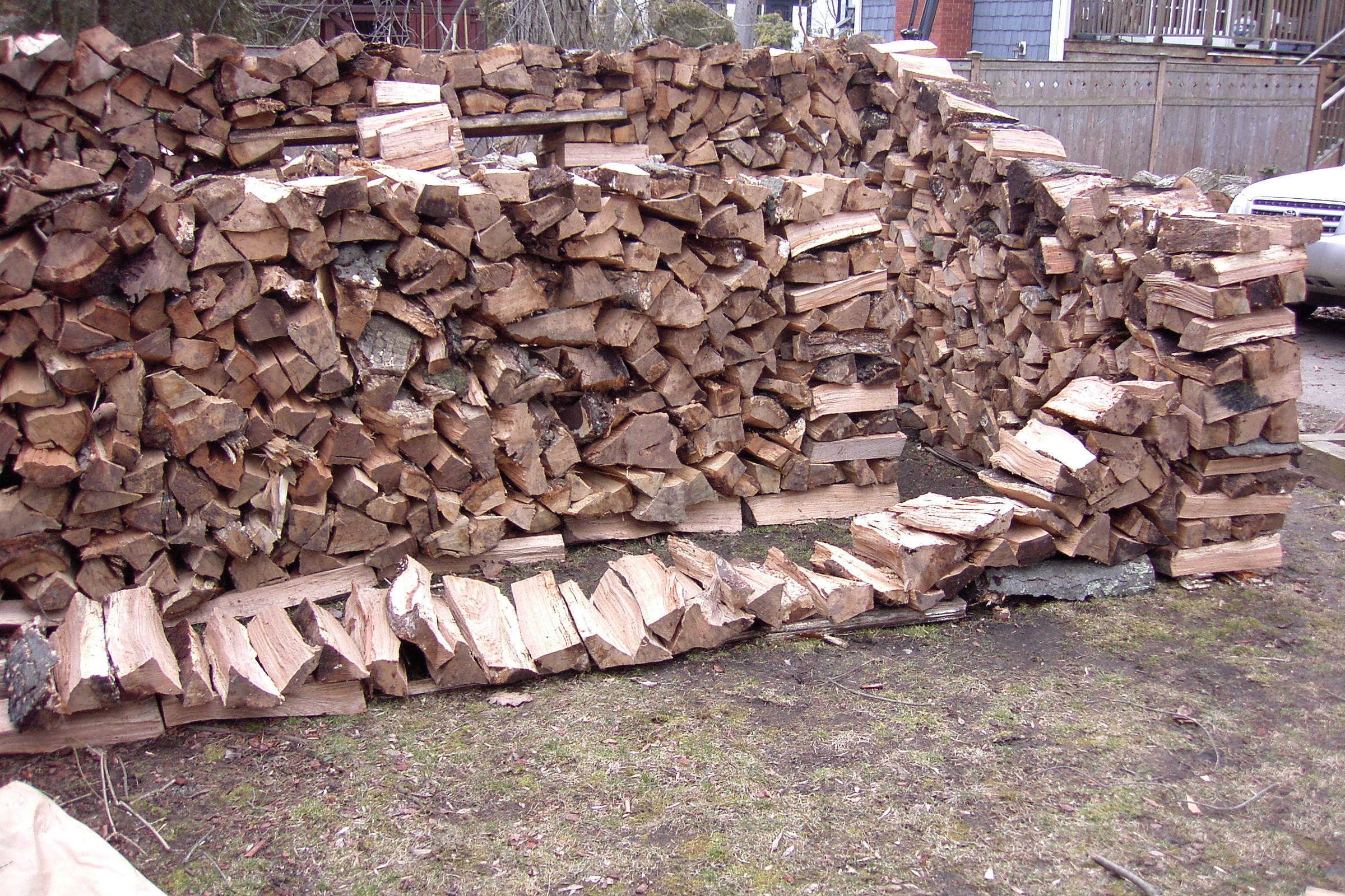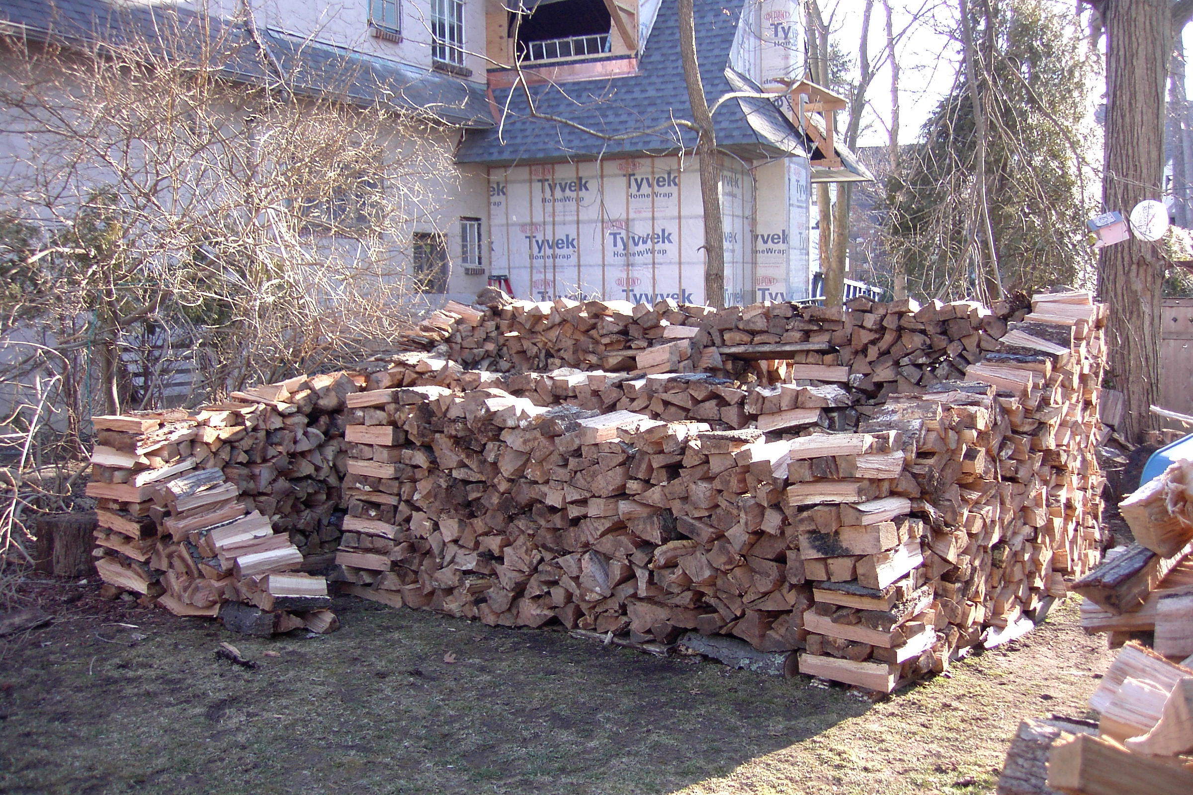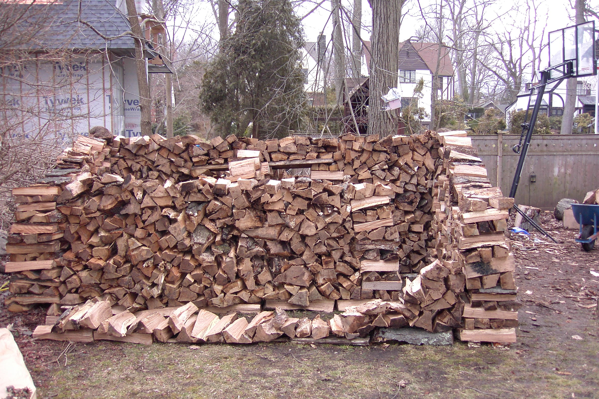 This is one of the people that heard my interview on the radio and heard that I would split wood for free and gave me a call. I usually don’t like to go as far as Stamford but I didn’t have anything closer once I finished that nice little house in New Rochelle on Forest Avenue. It looked like it would not be enough wood for a house, but once I heard that there was a child, enough room to build a house and interest in having one,I reconsidered and thought I would try to build a small one. Here is the  first couple of days work: