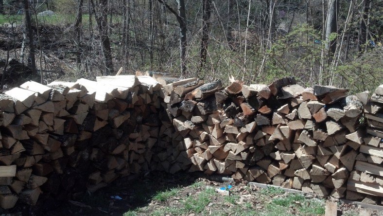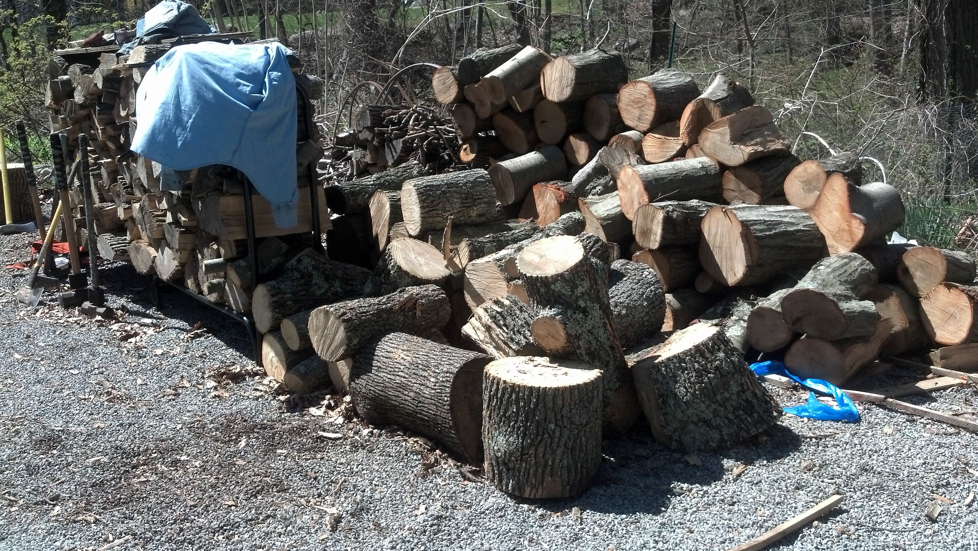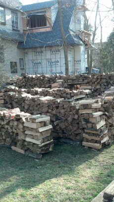Here are the logs  left to split.  It  looks like it will be probably enough for a small house . I don’t know whether we will be able to put any rooms in it. I doubt it.