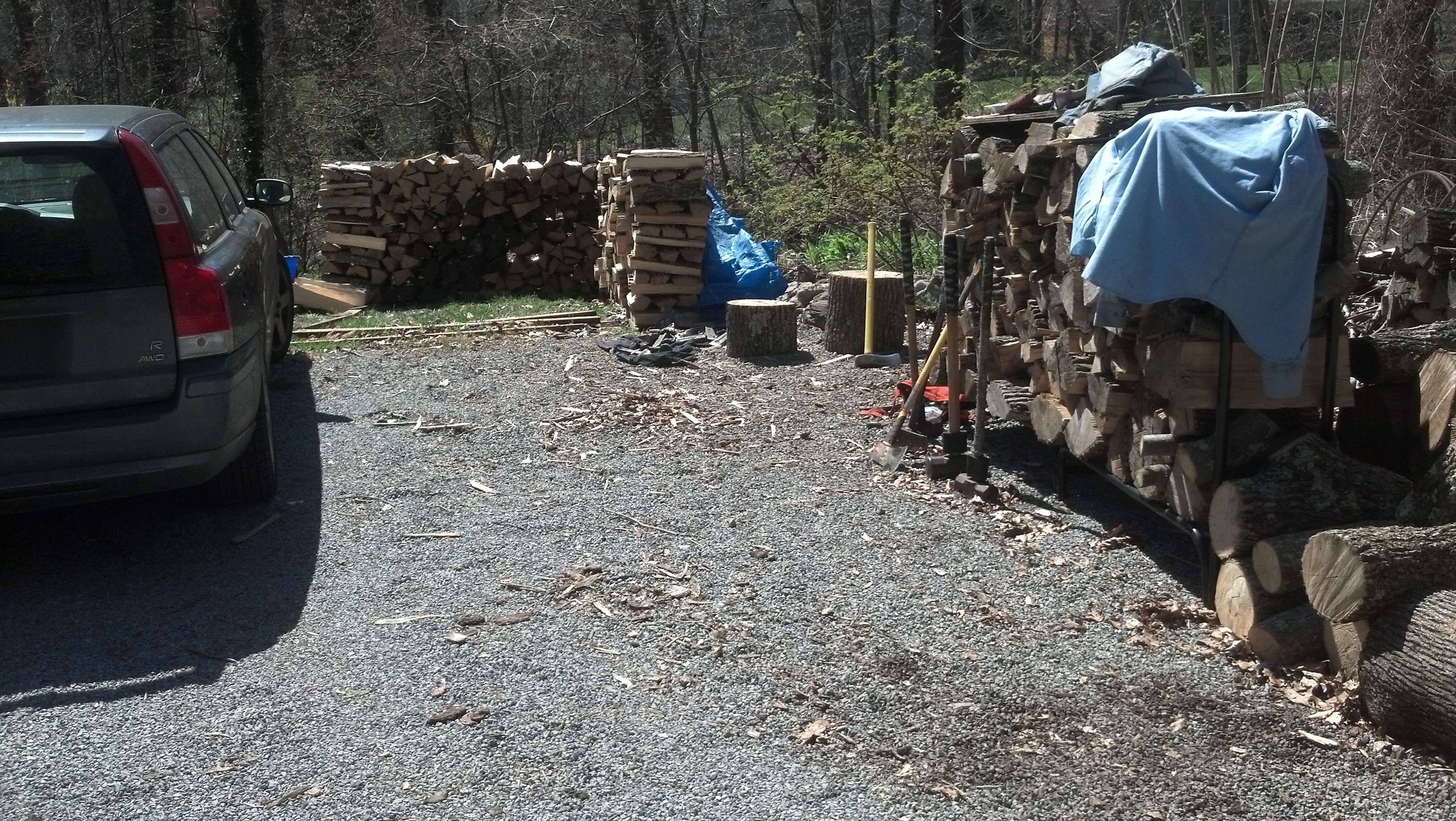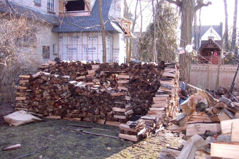 This brings us up the present time. I am entering this post on March 5,2012, and the eighth day was yesterday Sunday, March 4th. From now on I will try to enter the posts  in real-time as I complete the progress and take the pictures.I would guess, judging by the number of log left, that it will be about two weekends or two cords.