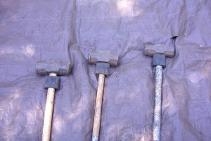 The next picture is of the three sledges. When there are little kids around, for example if I am building a wood house for them, I explain that the little 12 pound sledge is the baby sledge, and a 16 pound sledge is the mommy sledge, and then I pause. Invariably they will chime in and say that the big 20 pound sledge is the big daddy sledge, and they are right, of course.