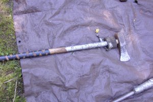 Now for a picture of the small maul, with its grevious wound, all taped up:
