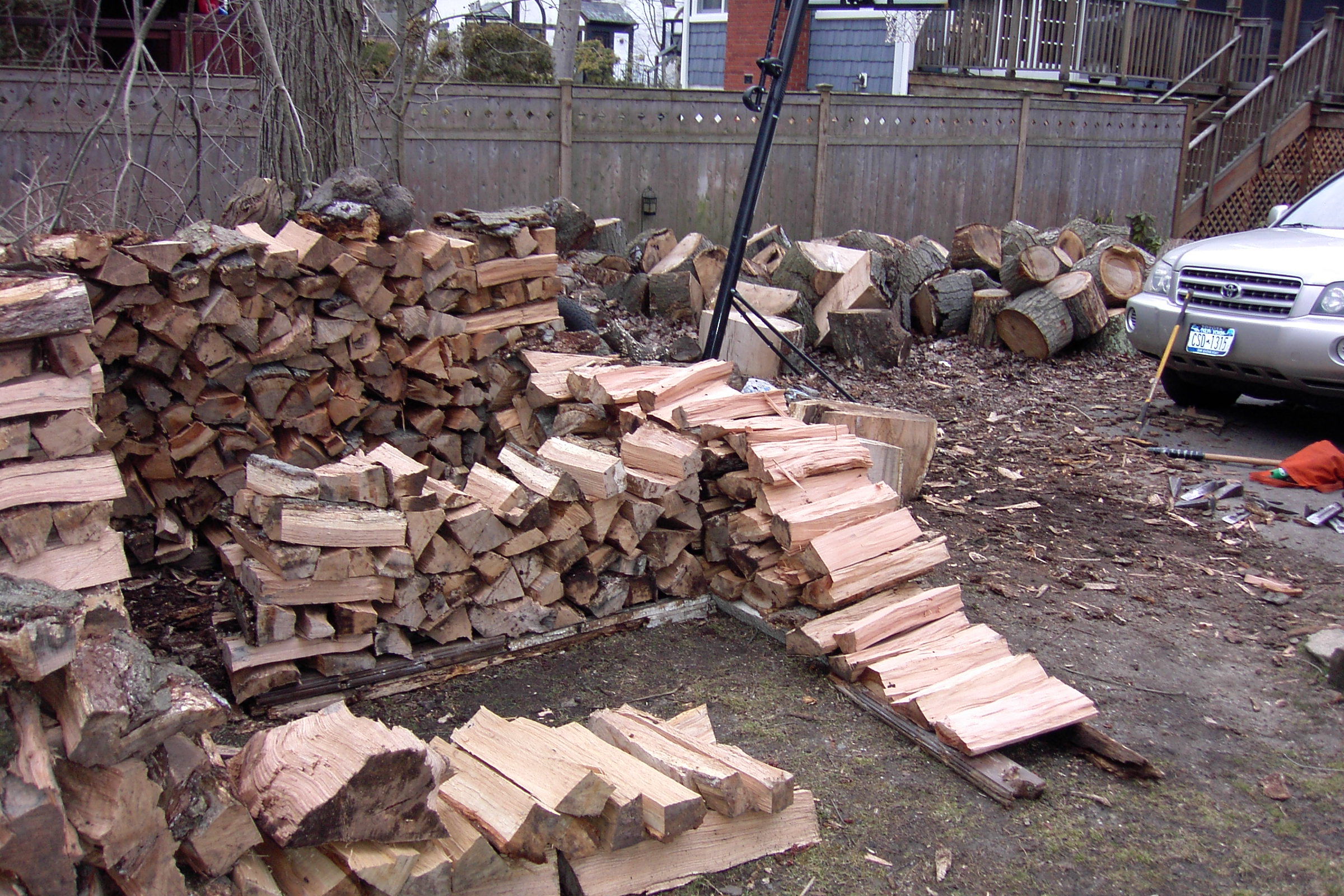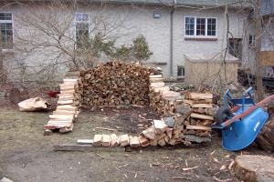 This brings up another point. People are always asking me if I’m still “chopping wood”. Being a purist, I am offended, of course, but I don’t bother to correct them and tell them that the proper term is “splitting wood”. It is only possible to split very small logs with an axe. An axe was used to cut down trees in the old days before chainsaws (and is still used by fellows like myself whose wife does not allow him to use chainsaws any more just because of one tiny accident.)